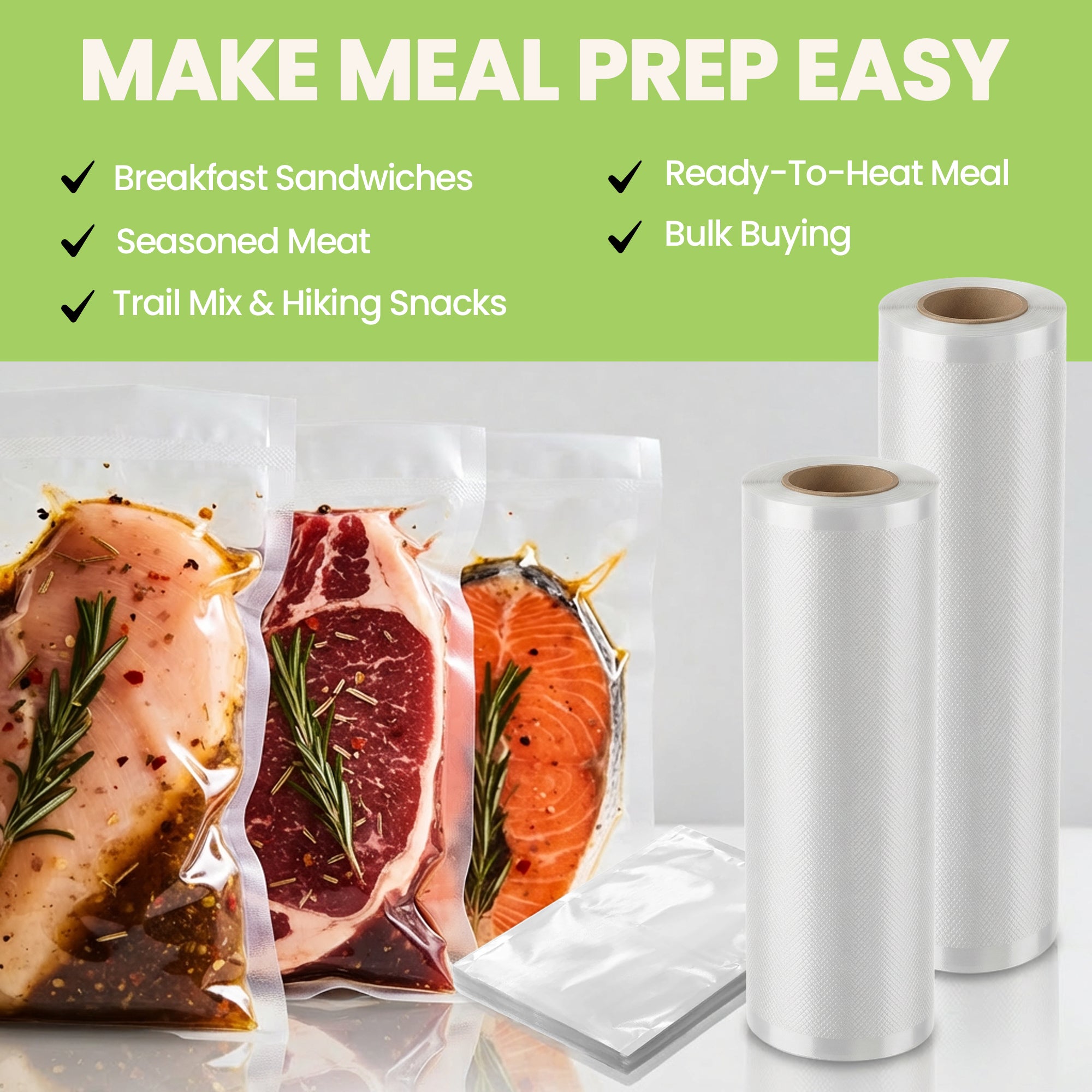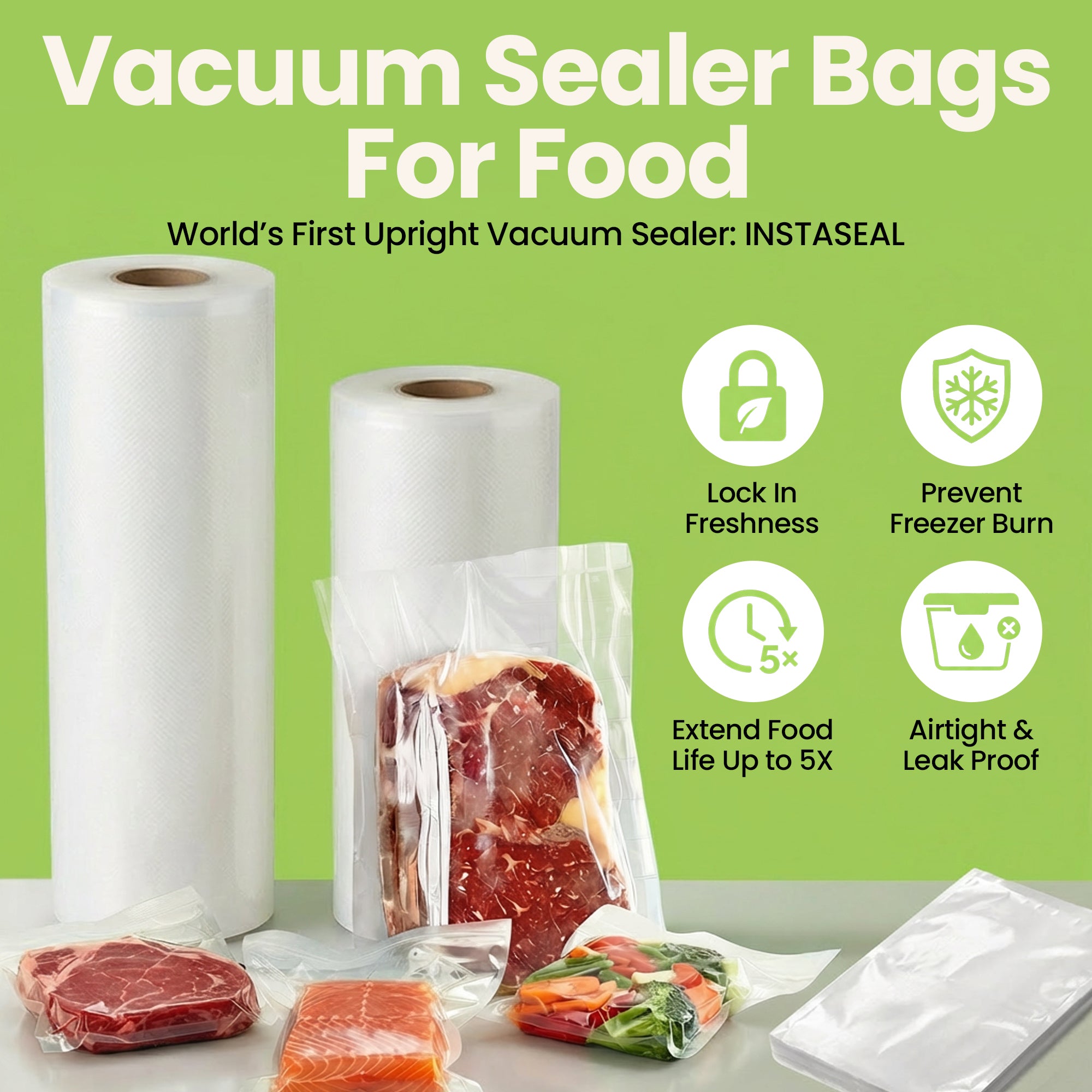 InstaSeal Vacuum Sealing Bags – Replacement Rolls & Pre-Cut Bags for Food Storage
