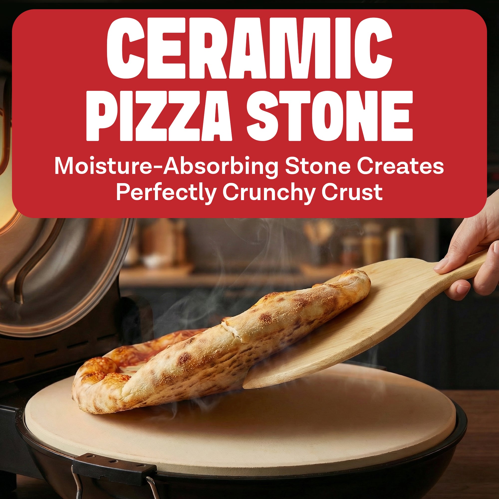 - DELICIOUS HOMEMADE PIZZA: Experience the taste of pizzeria-style pies right from home. Bake your personalized version on the stone surface and enjoy a cheesy, crispy crust pizza made in your kitchen, without turning on your oven.