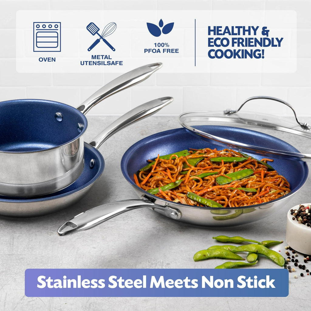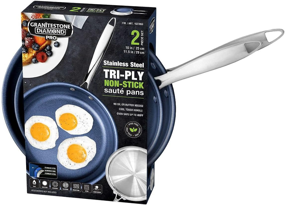 Granitestone Tri-Ply Stainless Steel 2 Piece Fry Pan Set