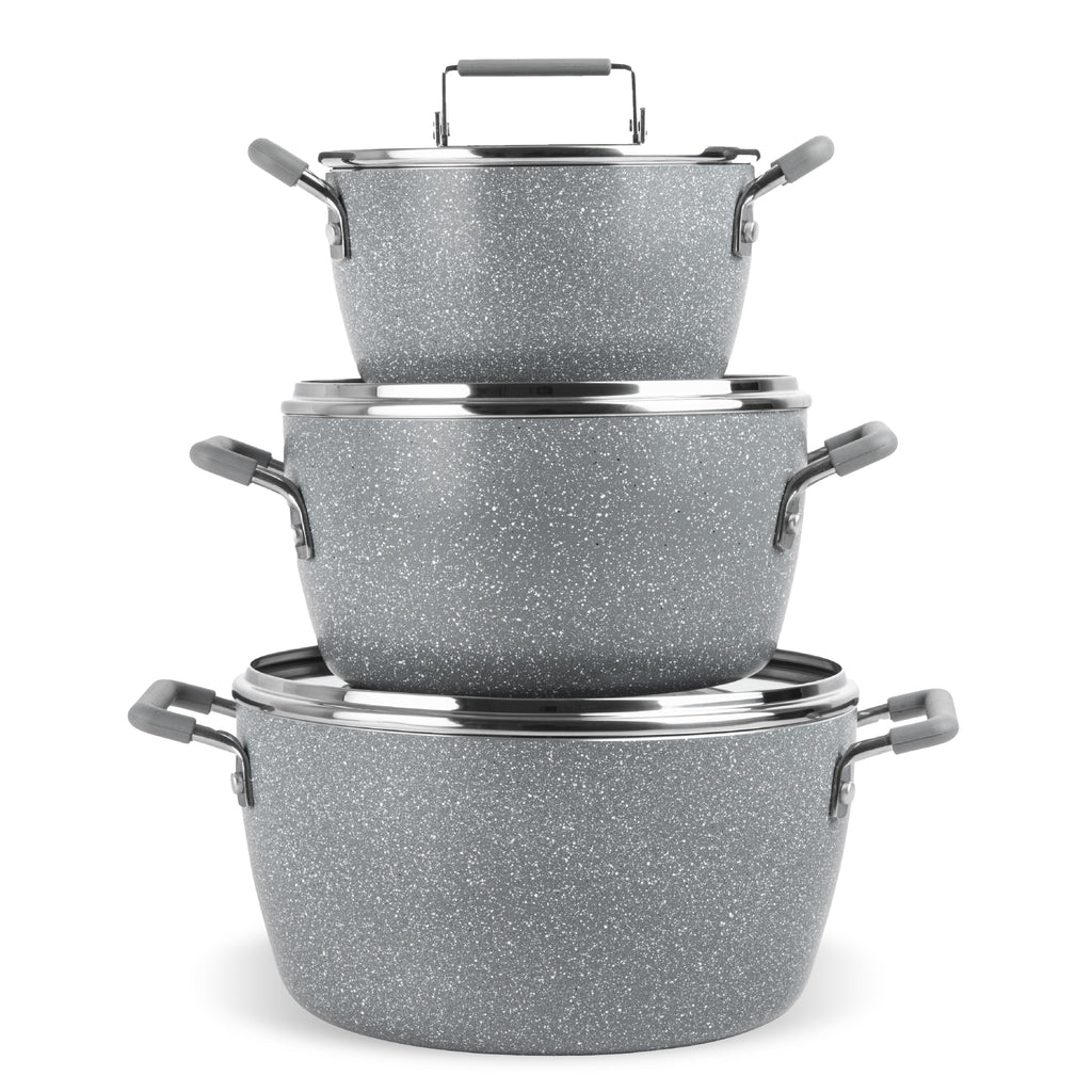 Granitestone Ceraluxe 6 Piece Grey Speckle Nesting Stock Pots Set