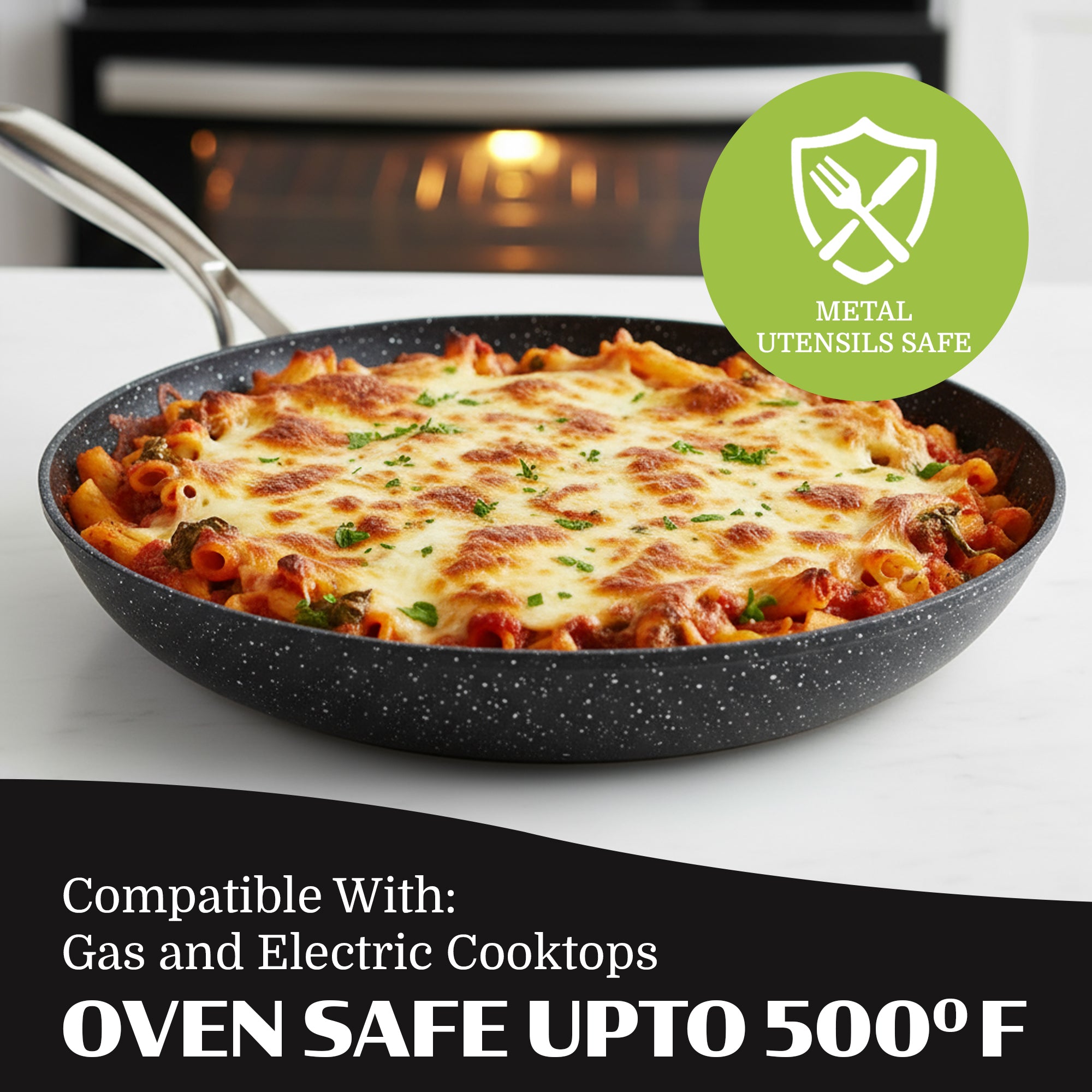 - Oven Safe: Seamlessly move dishes from stovetop to oven to finish or keep food warm.